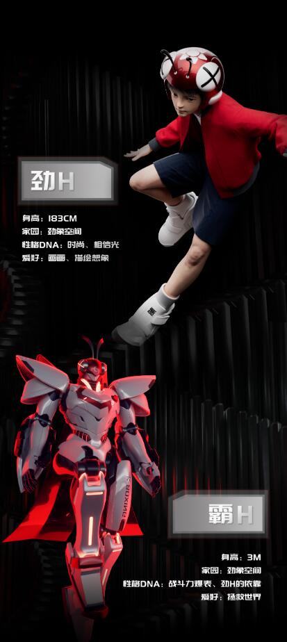 茄克品类专场秀期间,劲霸男装首度发布自有IP——劲H与霸H,以及它们的虚拟时空家园“劲象空间”,尝试以一种艺术化、潮流化、IP化的形式丰富品牌故事的内涵、增添人文温度,并借此探索品牌与未来年轻消费者的沟通方式。劲H与霸H最初的形象灵感出自于“劲三代”洪伯明的画笔下,两个虚拟人物,一个链接当下,一个链接未来,不仅有着正面活力的年轻形象,在他们成长的背景故事中,还寄托着42年中国时尚品牌与新时代年轻人“同年轻,共成长”情感价值。“劲象空间”融合品牌表达、服饰美学、未来科技、数字空间展览于一体,这里的每个空间,是感受与经历的集合;关于人类与宇宙、虚拟与现实、有限与无极。它们交织、链接、吸引、创造……我们在未来回望过去的故事,我们在此时感受当下的温度,这是我们的美好作品,也是劲霸男装多元探索的有劲想象。劲霸男装开启探索品牌自有IP与消费者的互动陪伴方式,以流量价值、情感价值和内容价值赋能未来,实现破圈。