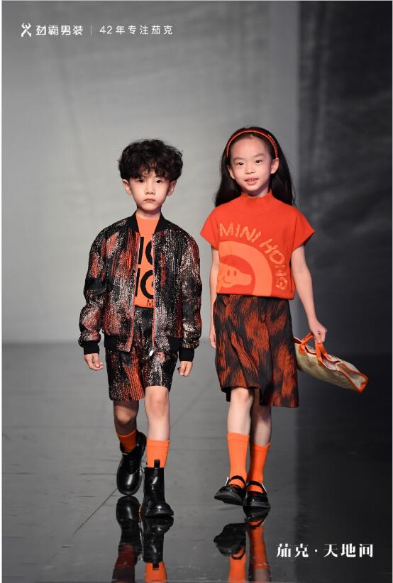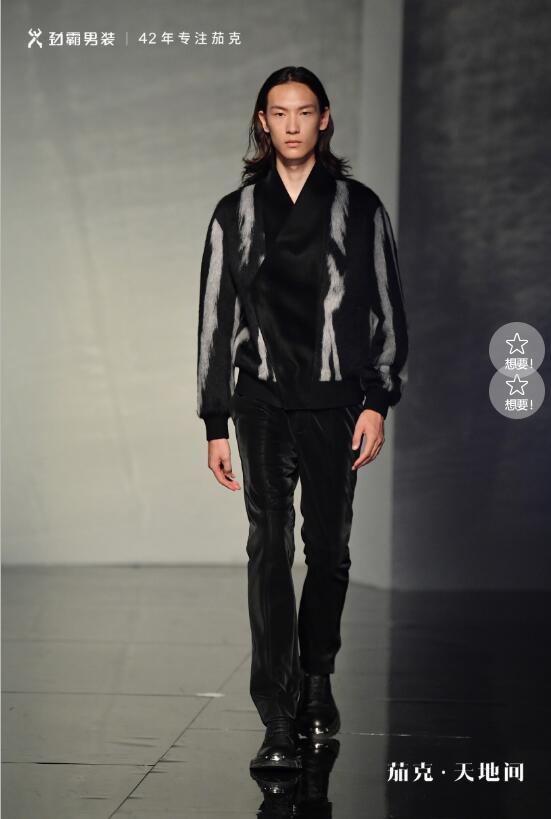 融归混沌,天地之间,人与自然和合共生。三度登陆米兰时装周官方日程的劲霸男装高端系列KB HONG,同样以【茄克·天地间】为切入点,融合国际时尚视野,以天地万物之气凸显东方美韵,以独特设计表达东方意韵与意式优雅的交融。大胆野性的动物花纹,时疏时密的纹理仿若万物同频呼吸,体现东方文化中“融”的理念。意大利进口面料,异质异色设计手法呈递高端质感。紧随高端系列KB HONG出场的童版秀款MINI HONG,在成人款基础上加入了活泼的暖橘色线条与图案点缀。主牌劲霸男装、高端系列KB HONG、MINI HONG全品类呈现,展现出天地间充沛绵亘的生命力量。