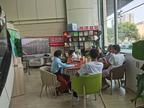 邮储银行杭州市萧山区支行营业部工作人员敏锐地捕捉到了这一日子的重要性,了解到网点客户中有不少退休老兵、退休老兵的家人,还有一些子女不在身边的空巢老人。为什么不邀请他们来网点一起观看阅兵直播,一起分享这份激动的心情呢?客户需要的,不仅仅是金融服务,更是一份陪伴与归属感。